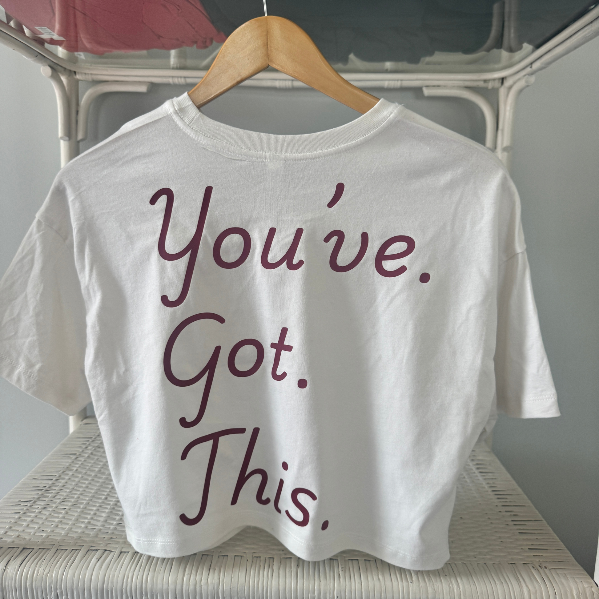 Show up and stand out on game day with the cutest good-luck charm you can wear. This cropped tee features three bold hearts on the front for a playful pop, and your ultimate reminder across the back: You’ve. Got. This.
